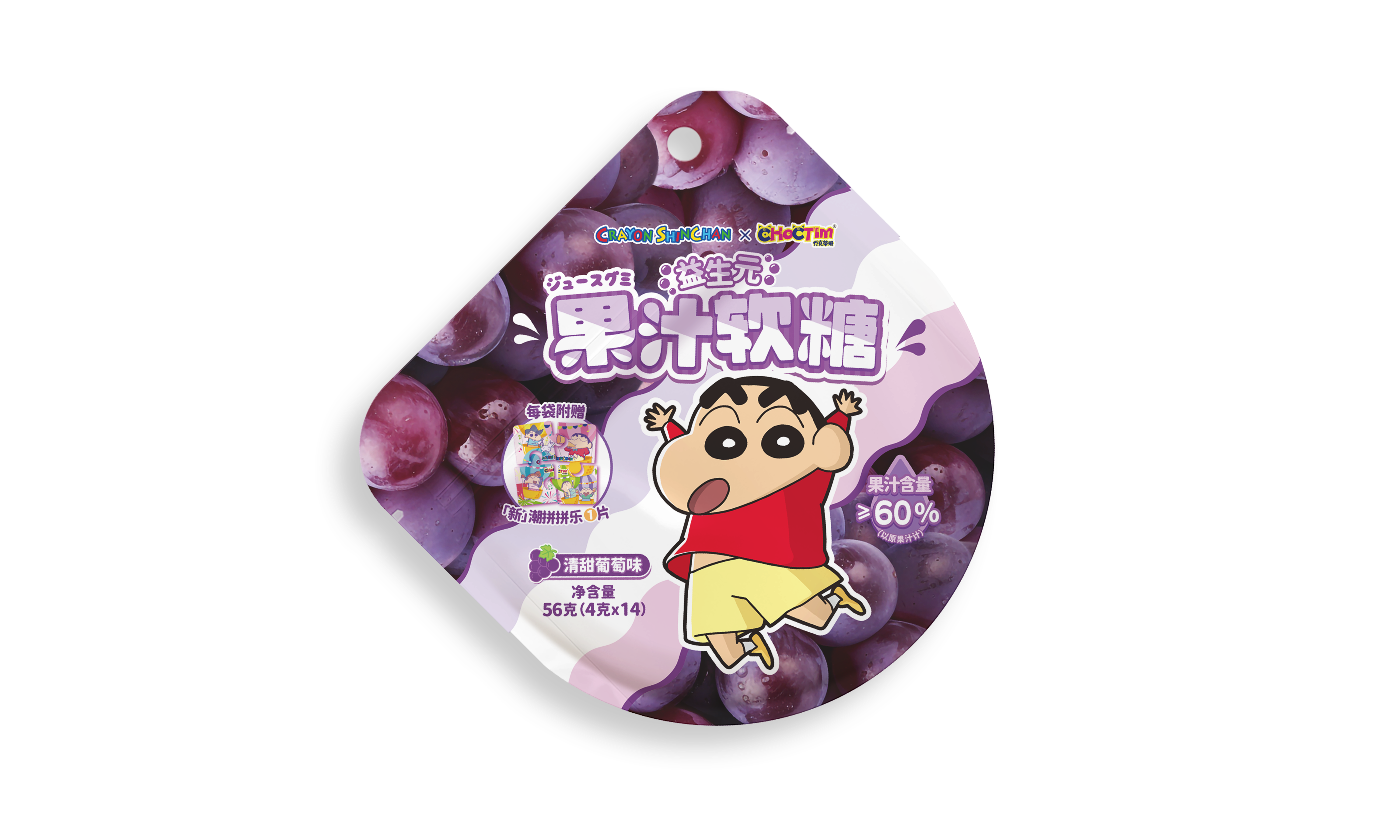 乔克蒂姆小新益生元果汁软糖-清甜葡萄味-外袋商品高清效果图-正面