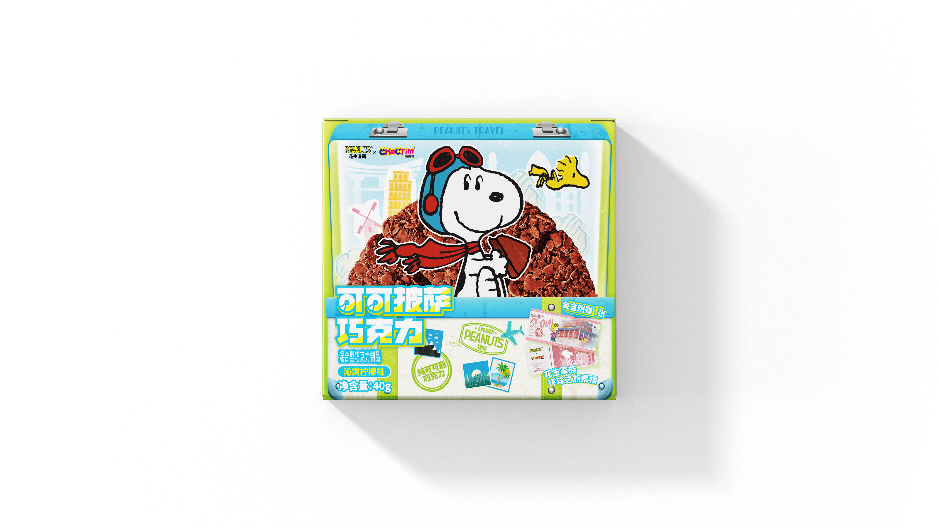 乔克蒂姆史努比可可披萨巧克力-沁爽柠檬味-外盒商品高清效果图-正面