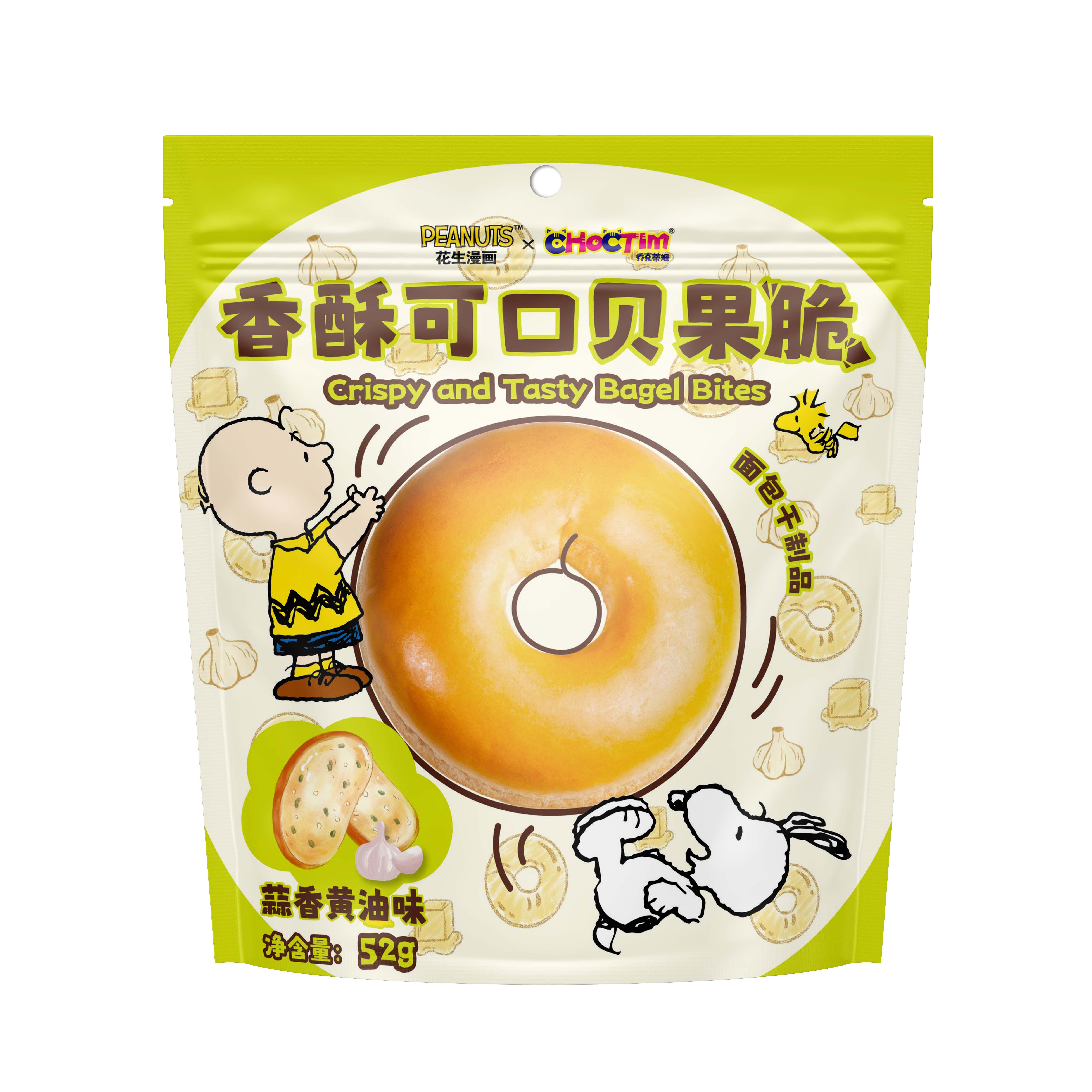 乔克蒂姆史努比香酥可口贝果脆-蒜香黄油味-外袋商品高清效果图-正面